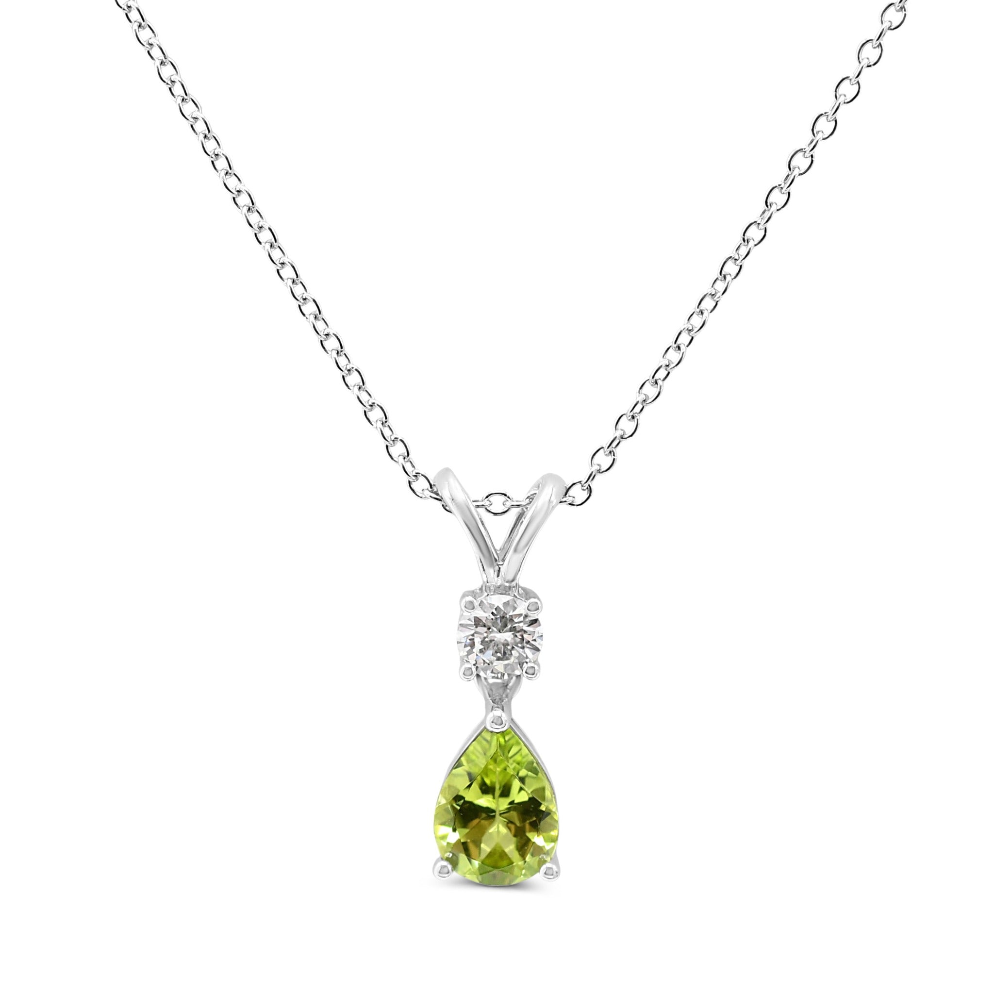This elegant pendant necklace combines the luminous charm of peridot with a brilliant-cut diamond, creating a refined piece perfect for everyday sophistication. The approximately assessed 0.23ct diamond, in house graded at SI1/2 clarity & I/J colour, pairs beautifully with the vibrant pear cut peridot stone.