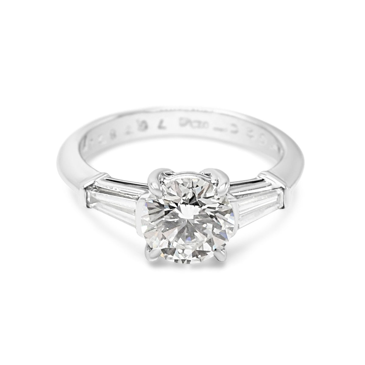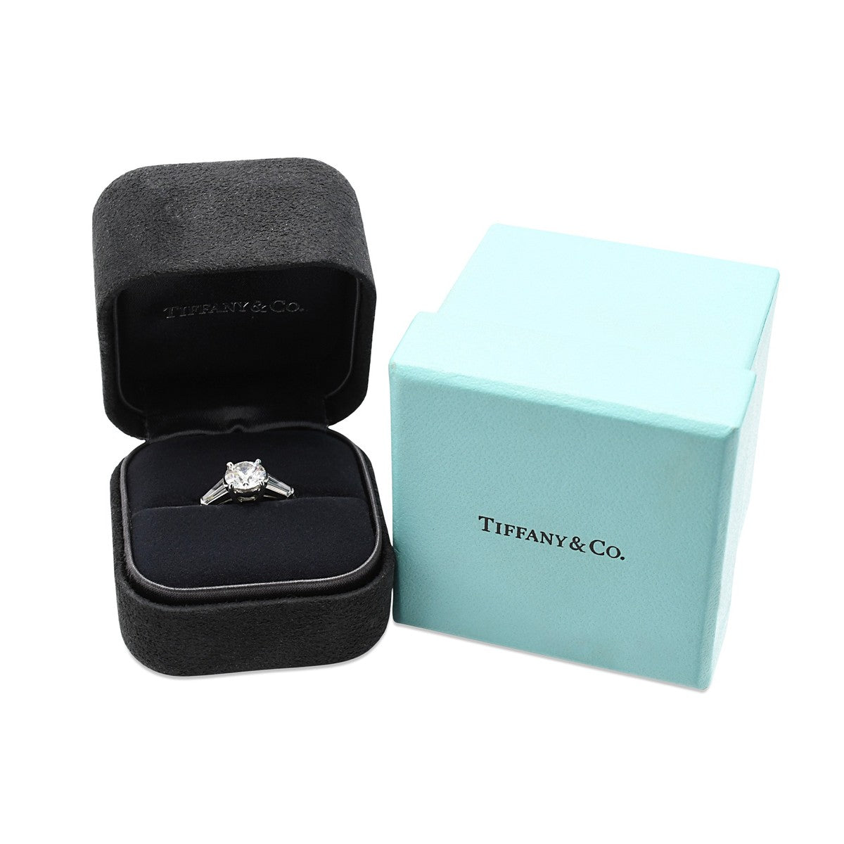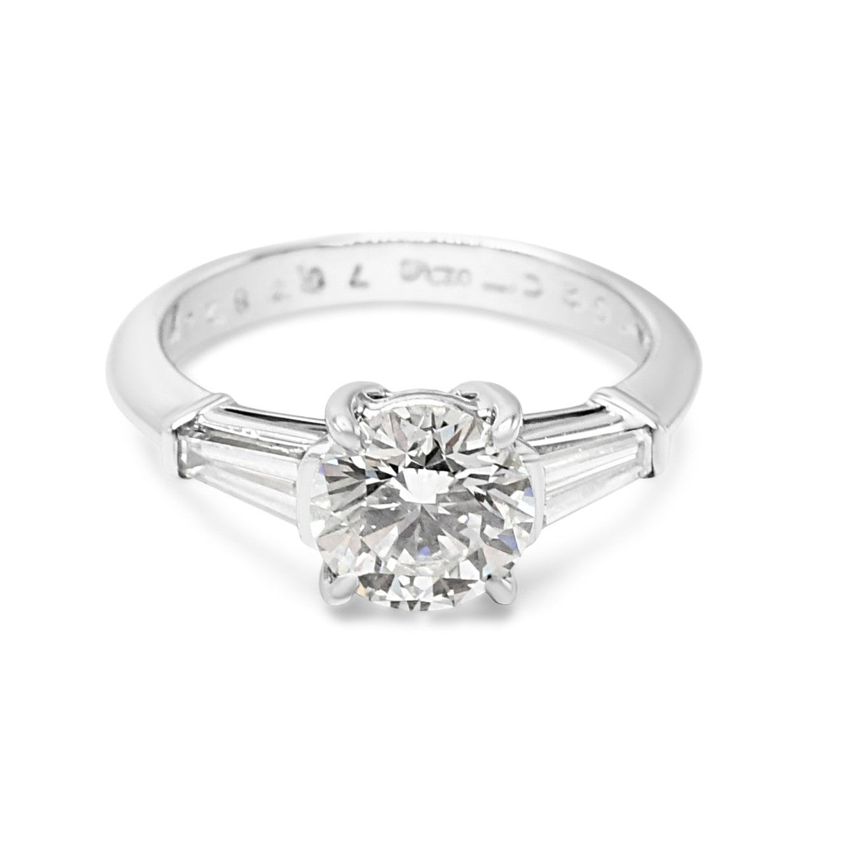 This exquisite Tiffany & Co solitaire diamond ring epitomises timeless elegance. Crafted in platinum, it features a stunning 1.52-carat principal diamond (G colour, VS2 clarity) set upon delicate diamond shoulders.