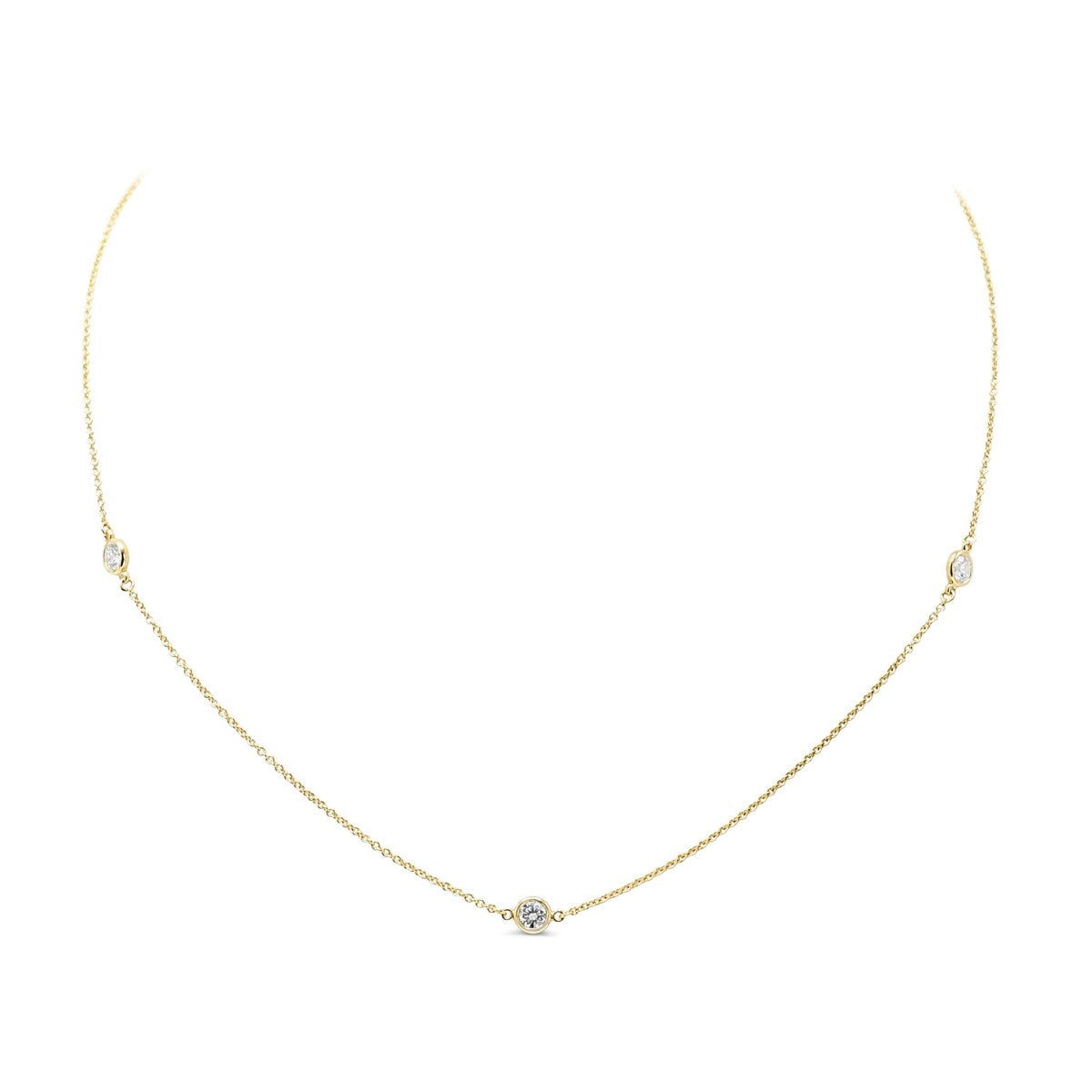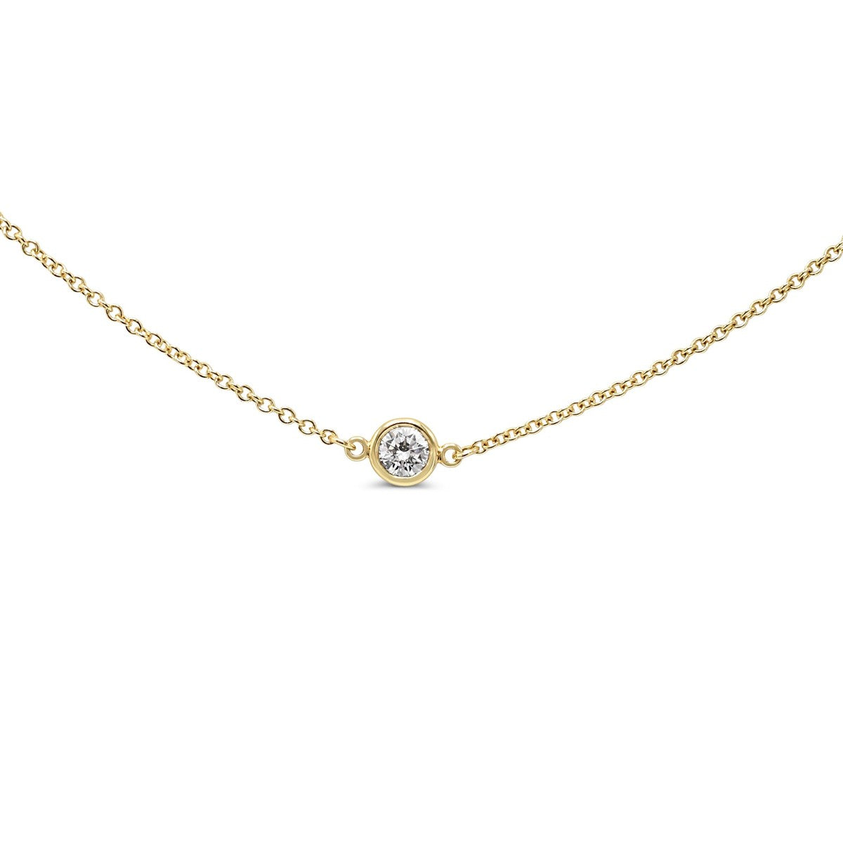 Elevate your everyday elegance with this iconic Tiffany & Co Elsa Peretti Diamonds by the Yard necklace. Crafted in lustrous 18ct yellow gold, this timeless piece features five brilliant diamonds totalling 0.70 carats, delicately spaced along a graceful 16" chain.