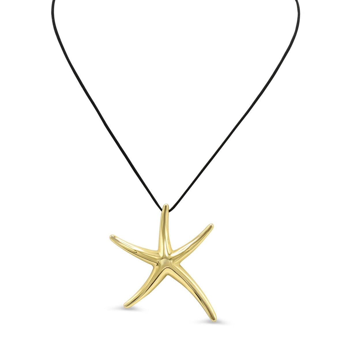 The beautifully detailed starfish design measures approximately 52 x 43mm, suspended gracefully from an 18" silk necklace. Weighing just 10.6g, this refined piece combines delicate artistry with enduring quality.