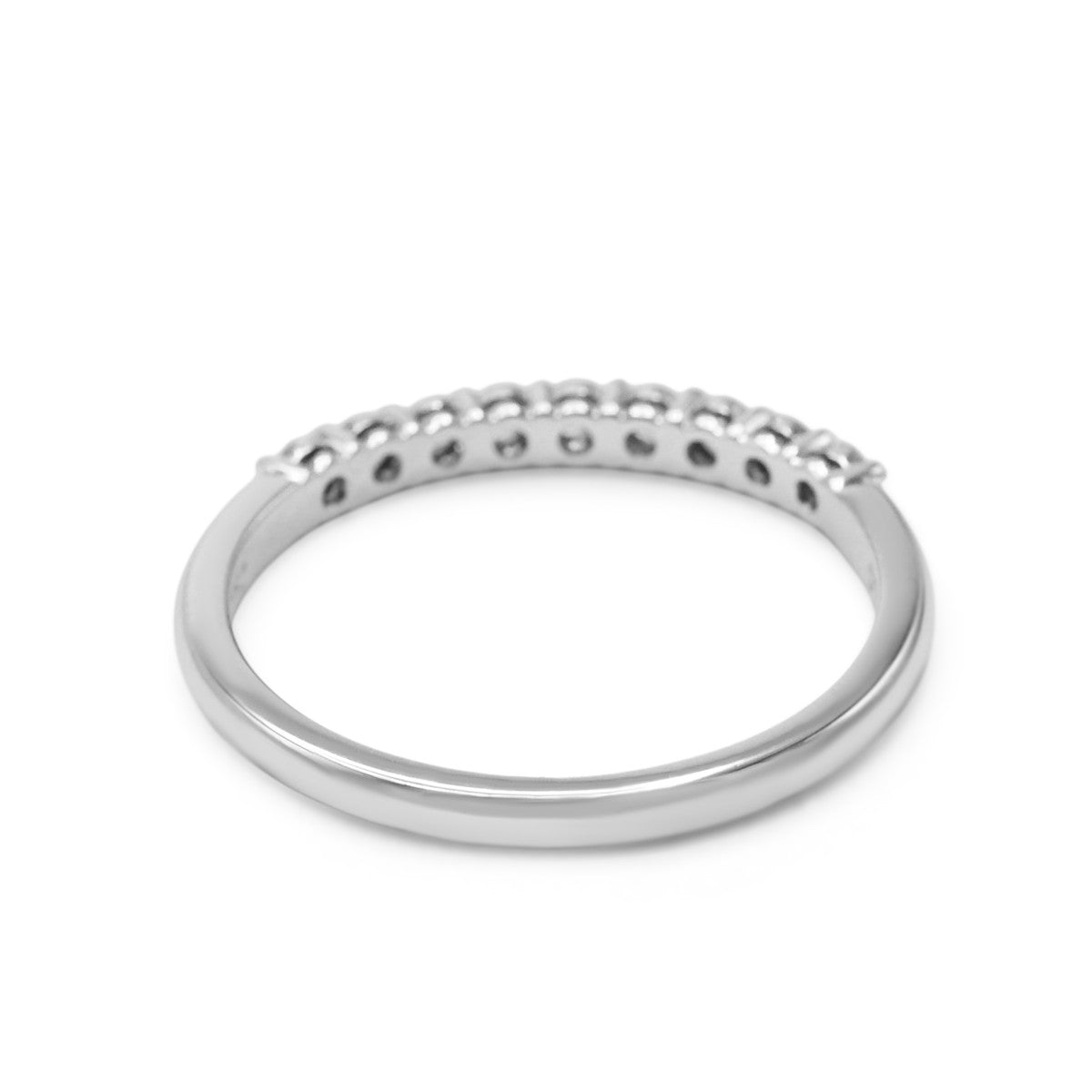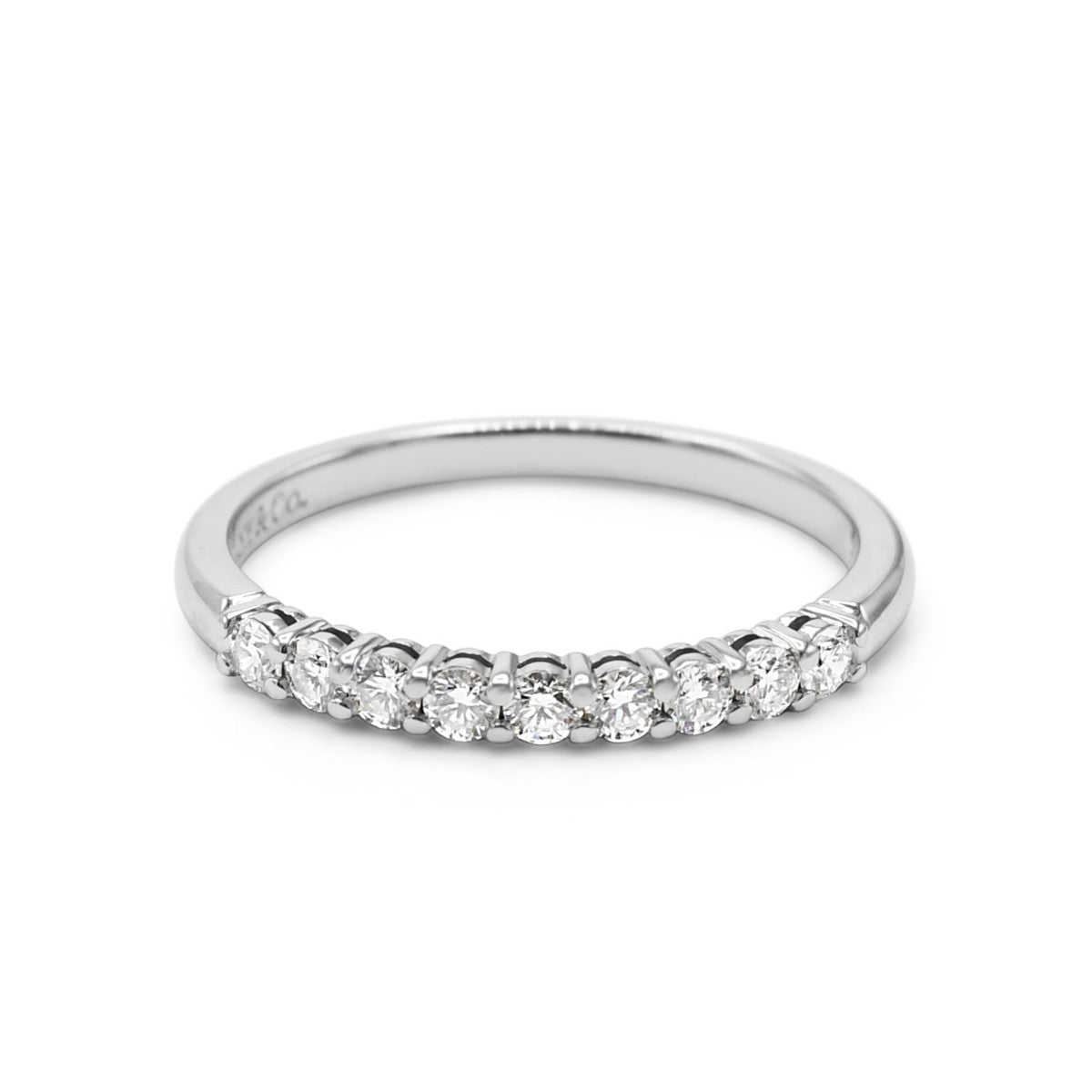 Discover timeless elegance with this exquisite Tiffany & Co. Forever Band Ring, a symbol of enduring love and commitment. This women's ring features a graceful half-circle of sparkling diamonds totalling approximately 0.27 carats, creating a refined silhouette that complements any occasion.