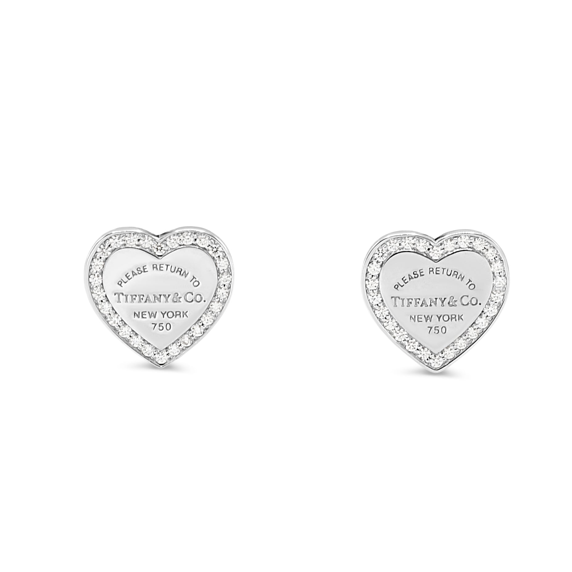 Tiffany & Co's iconic Return to Tiffany collection reimagined in these elegant diamond heart earrings. Each piece features a delicate heart silhouette adorned with a total approximately 0.18 carats of sparkling diamonds combined.
