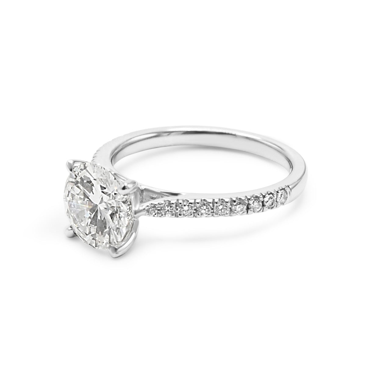 Certificated Solitaire Diamond Ring, Diamond Shoulders - Platinum