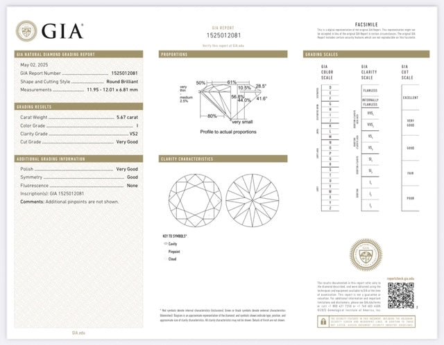 GIA Certificated Diamond Ring 5.67cts I VS2