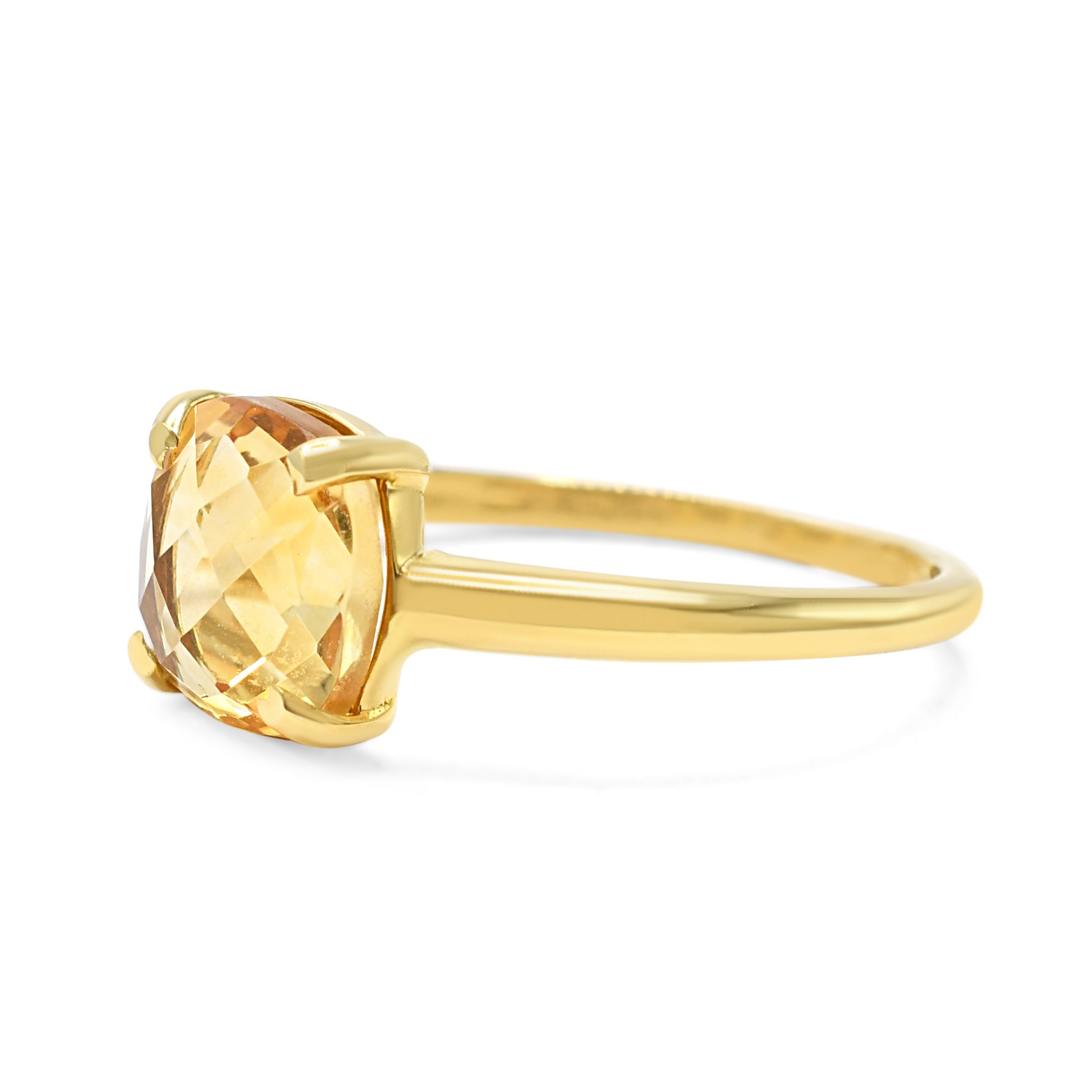 Crafted with the highest quality 18ct Yellow Gold, this Unworn ring exudes elegance and class. Its unique Faceted Square Cut gives it a modern and edgy touch, while the vibrant Citrine Gemstone adds a pop of colour and radiance.