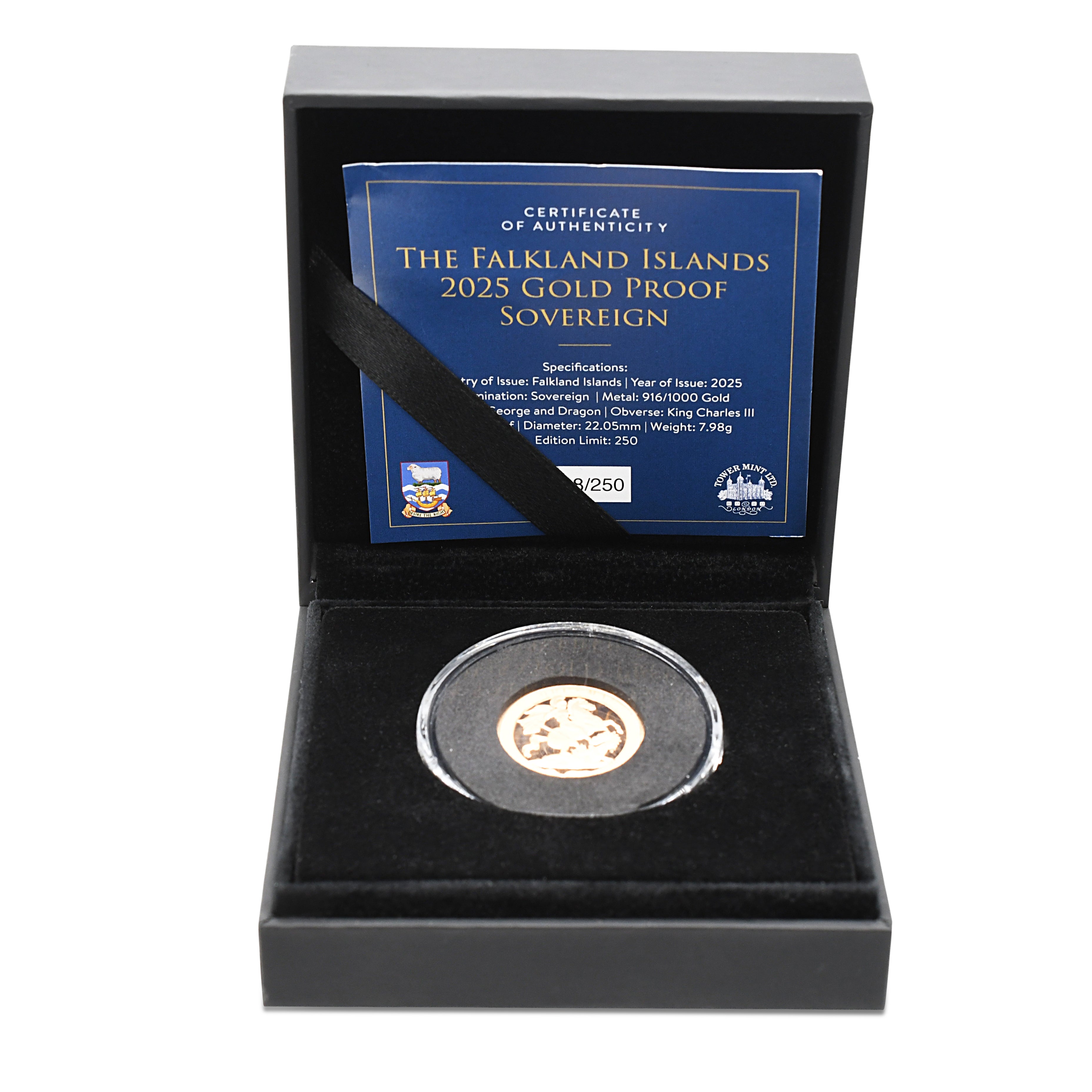 Crafted from 22ct Yellow Gold, this pre-owned 2025 Falklands Gold Proof Sovereign is a true symbol of luxury and refinement. This unisex coin is designed to appeal to both men and women, making it the perfect addition to your collection, no matter who you are.