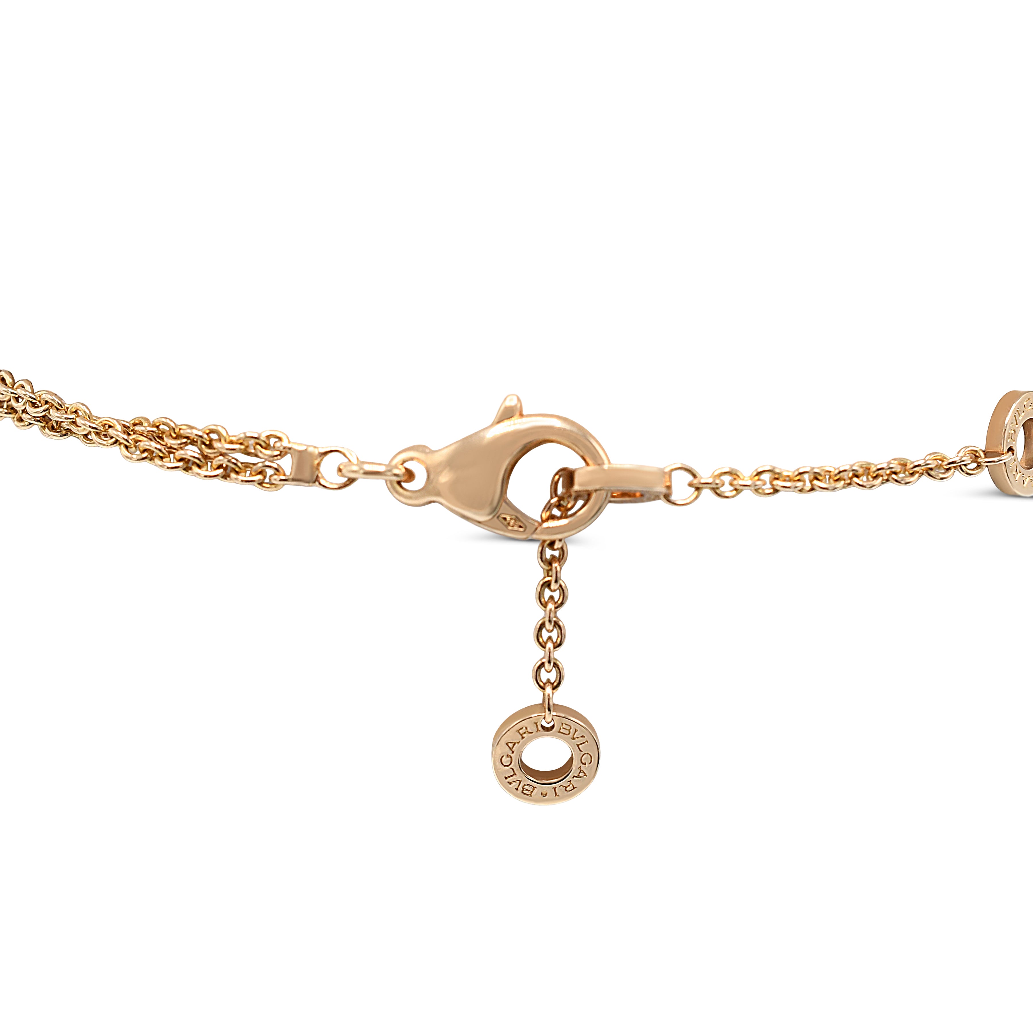 Crafted with the finest materials and attention to detail, this pre-owned bracelet is the epitome of luxury. The brand name “Bvlgari” is repeated in a strikingly openwork pattern, creating an effortlessly chic and bold design. Adorned with sparkling pave Diamonds, this used bracelet captures the light from every angle and adds a touch of glamour to any outfit.