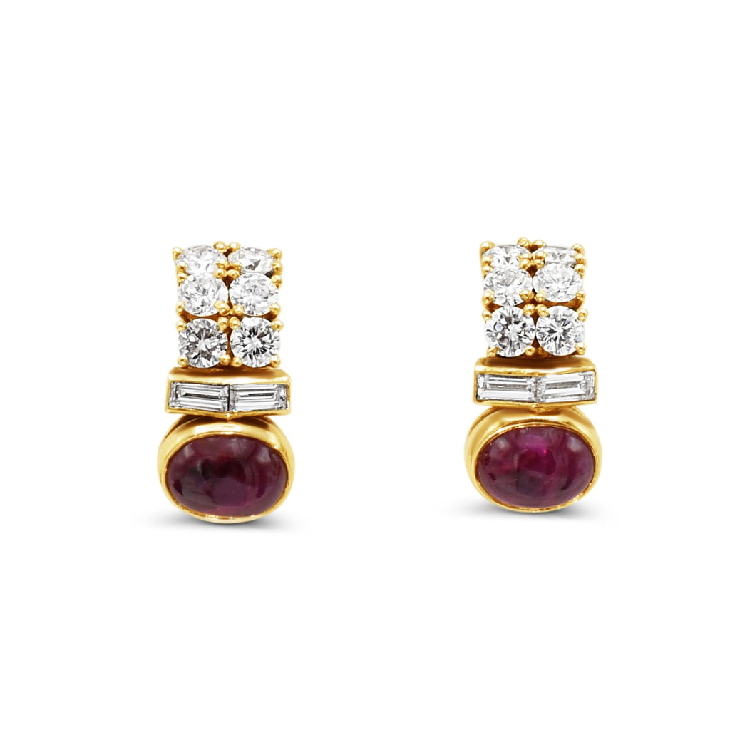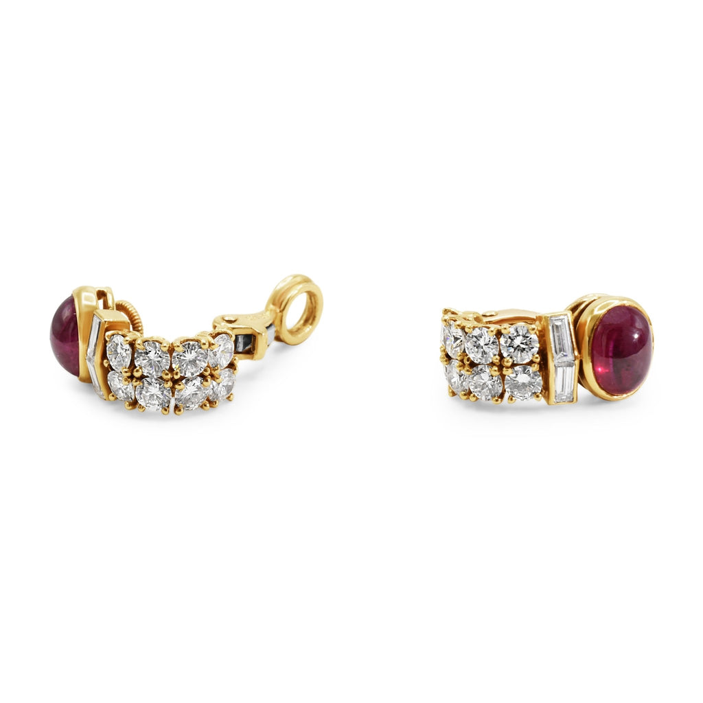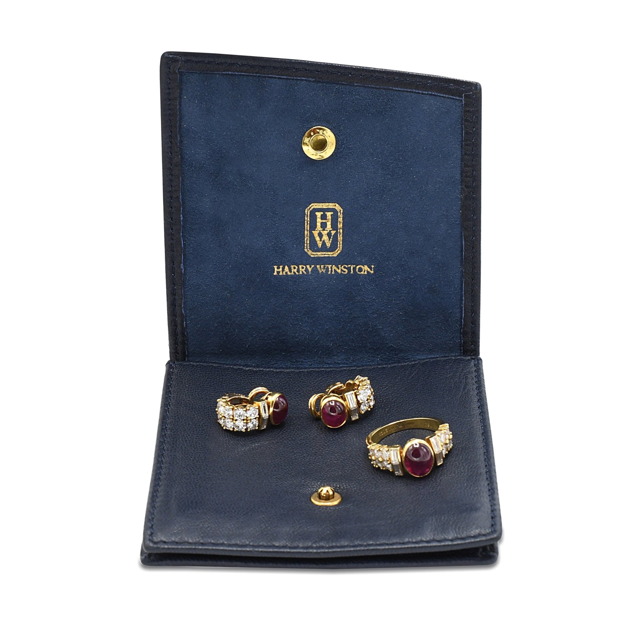 Harry Winston Diamond & Ruby Ring + Matching Earrings Suite
