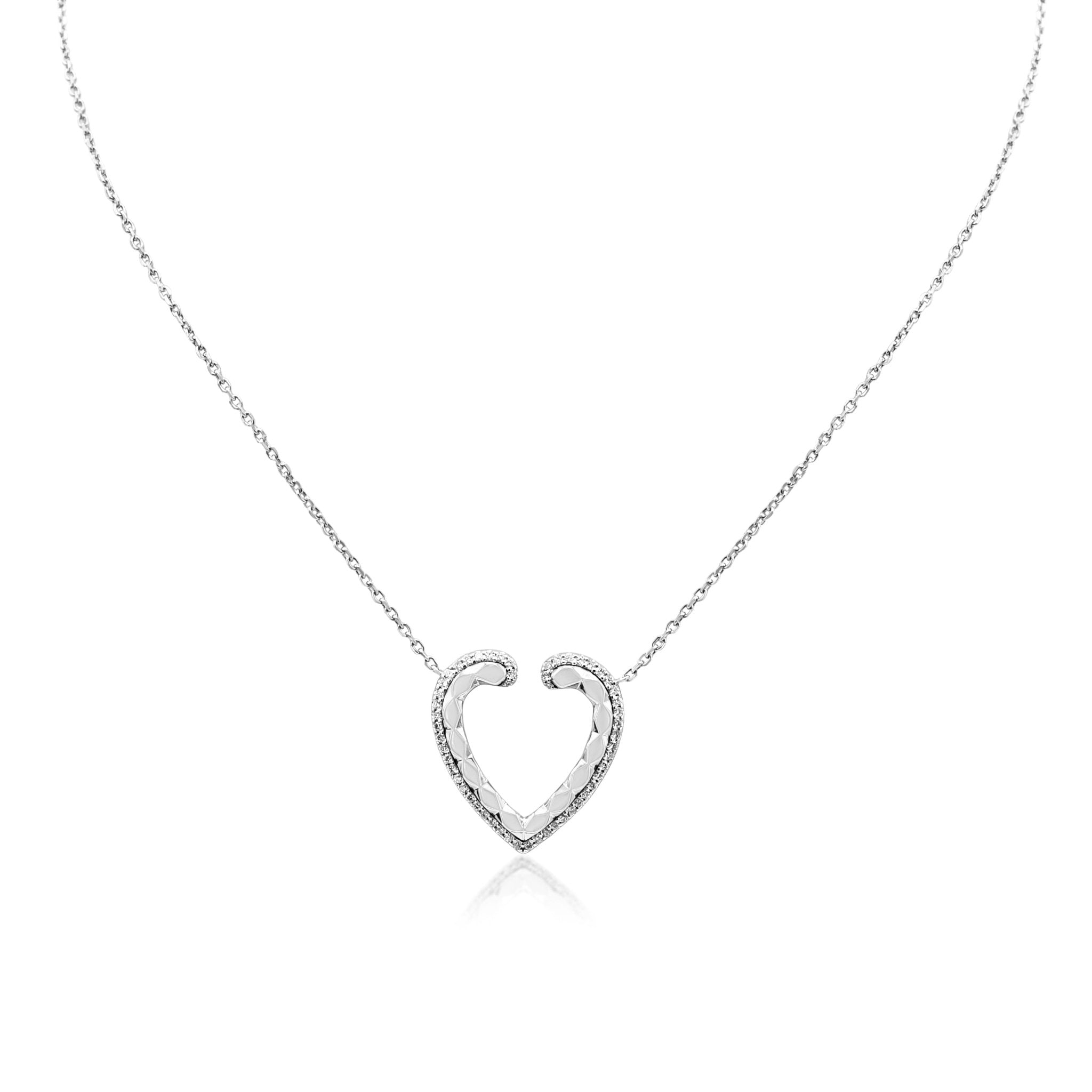Ladies, get ready to add a touch of luxury and elegance to your wardrobe with this dazzling second hand Garrard Aloria Collection Patterned Diamond Heart Pendant Necklace. This necklace is the epitome of sophistication, with its 18ct White Gold material and 0.32ct total Diamond weight.